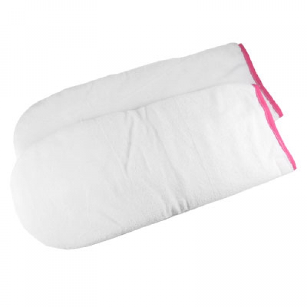 1 Paar Frottee-Handschuhe (Ersatz-Handschuhe) für das Paraffinbad. Die Frottee-Handschuhe verzögern das Abkühlen des Paraffins auf den Händen. Die Handschuhe intensivieren und unterstützen die Wirkung des Paraffinwachses bei einer Behandlung.